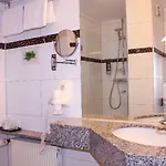 Perfekt beliggenhed, meget rent sted, undtagelsesvis venligt personale. Der var centralvarme, tv med mange kanaler og et skrivebord, nød virkelig det. Sengen var ekstraordinært behagelig og jeg havde en balkon, som var pæn...